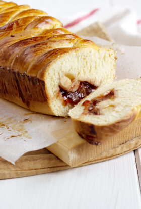 Boulange, Breakfast, Brunch, Desserts, Sweet, ViennoiseriesEnglish brioche with strawberry jam, dried grapes and flaked almonds